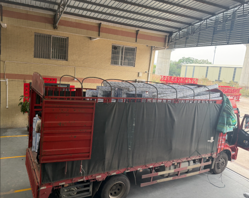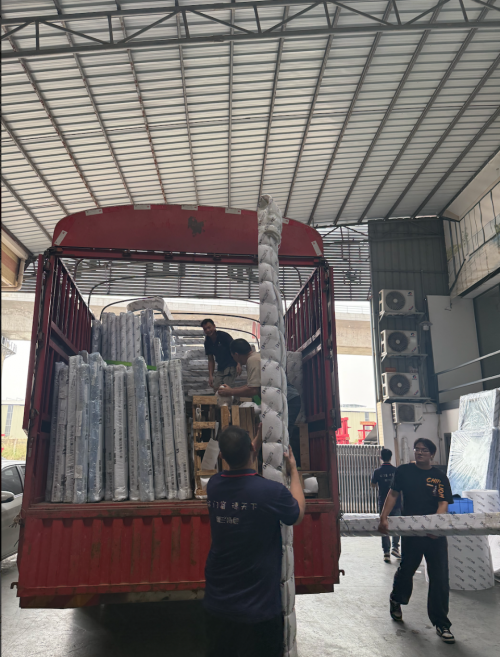 德兰诗尼每次在装车前所有产品均采用防水缠绕膜整体包裹,并由专业工人进行装车固定。车辆停靠在厂区装卸区,车厢内部整洁,货物堆叠有序,篷布覆盖严密,体现出德兰诗尼在物流环节的细致把控。